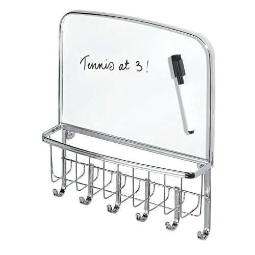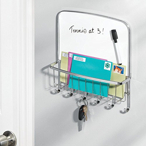 mDesign Mail Organizer, Letter Holder and Key Rack with Dry-Erase Board - Chrome