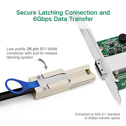 Support 6Gb/s(SATA) data transfer protocol The SFF-8088 is compliant with the latest Mini-SAS 2.1 spec, and supports 6Gb/s data transfer protocol