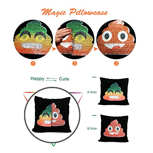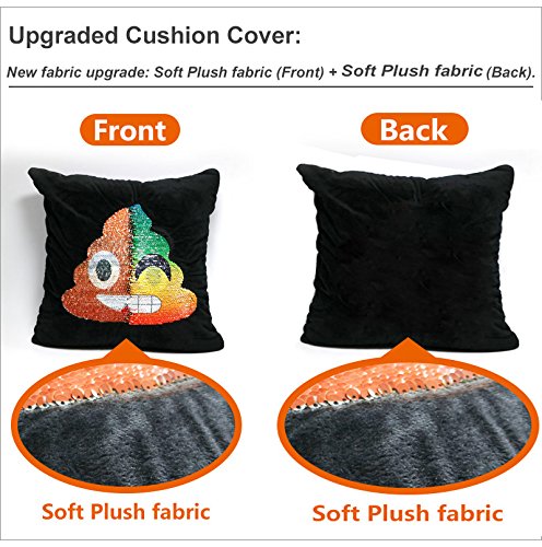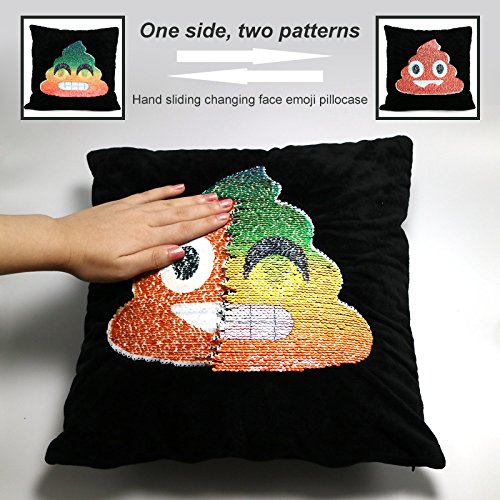 ?Material: sequin and soft plush fabric ?Size: 40CM * 40CM ?Closure: Hidden Zip ?The pattern is on the only one side Package Content: 1Pcs of Pillowcase??(no inner) Features: -Good Sliding Sequins Making the emoji Pillow Case is Easy to Changing Different Faces. -Shining Satin? Fabric Bring the Emoji Pillowcase More Cute And Beautiful. -It's?Comfortable and beautiful For Sofa,Car,Bed,Hotel and Home Decoration. Note: ????? 1.There may be some color differences due to lighting and different monitors. ????? 2.Please allow 1-2cm size error because of manual measurement. Reminder: when you buy a pillow cover, don't use the same size pillow insert; that will usually end up looking limp and sad. Size up! 0