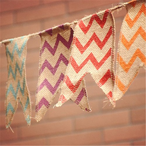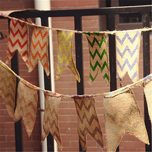 3.4M Length / 21 Flags Chevron Natural Hessian Burlap Banner Wedding Party Decorations Bunting Banner