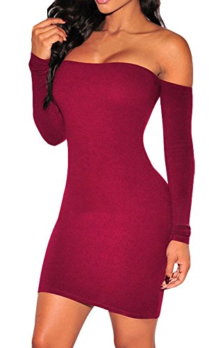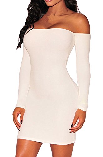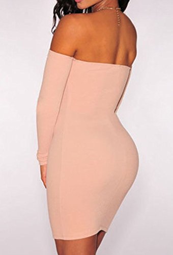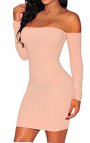 Sexy Womens Off-The-Shoulder Long Sleeves Mini Club Party Dress (One Size, Light Pink)