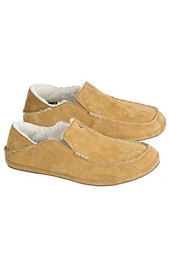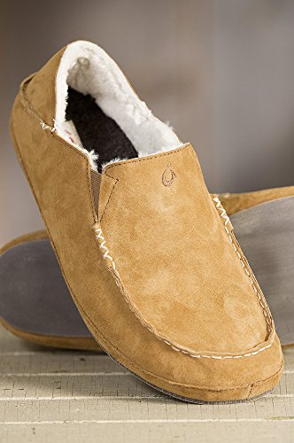 -. Binding : Apparel -. Brand : Overland Sheepskin Co -. Department : mens -. Feature : These cozy slippers are crafted in premium Nubuck leather with a sueded feel / Lined in Australian Shearling wool, that provides plush comfort and the ultimate warmth / A thick, sculpted, drop-in insole cushion offers incredible comfort and support / Stretch gore inserts make it easy to step in and out of these premium slippers / Nubuck leather. Shearling lining. Imported -. Label : Overland Sheepskin Co. -. Manufacturer : Overland Sheepskin Co. -. Model : 57434 -. ProductGroup : Shoes -. ProductTypeName : SHOES -. Publisher : Overland Sheepskin Co. -. Studio : Overland Sheepskin Co. -. Title : Overland Sheepskin Co Men's OluKai Moala Sheepskin Slippers
