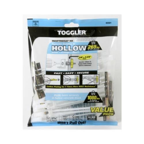 TOGGLER SNAPTOGGLE BB Toggle Anchor with Bolts, Zinc-Plated Steel Channel, Made in US, 3/8" to 3-5/8" Grip Range, For 1/4"-20 UNC Fastener Size