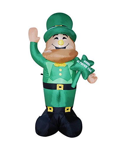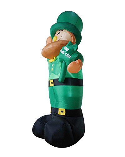 7 Ft Inflatable St. Patrick's Day Decoration Lighted Waving Leprechaun Holding a Shamrock for Home Yard Lawn Garden Indoor Outdoor