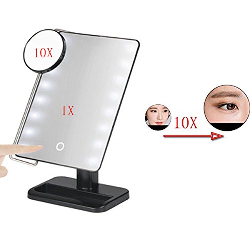 You-Beauty LED Illunmiated Cosmetic Mirror, LED Make-up Mirror,B90 Lighted Make-up Mirror,with Lights Touch Screen and 10X Magnifying Round Make-Up Mirror