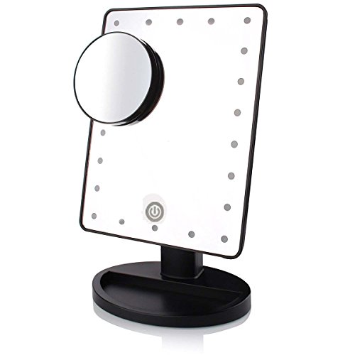- This LED lights makeup mirror The mirrorface can be fixed at any angle, and could be adjusted to different angles up to 180 Degrees according to your needs . Comes with a small detachable 10X magnification / magnifying spot mirror