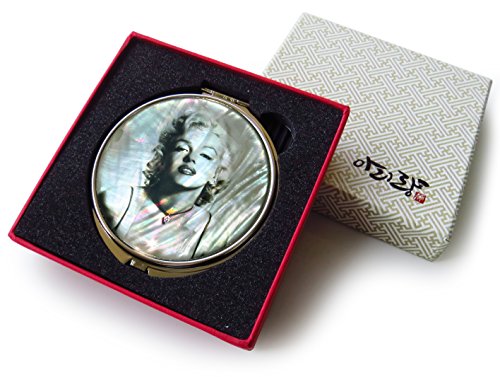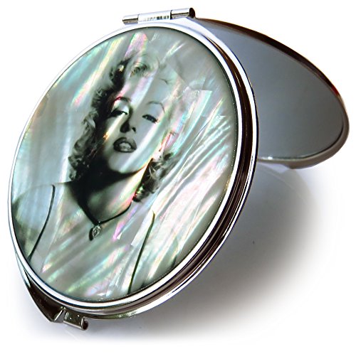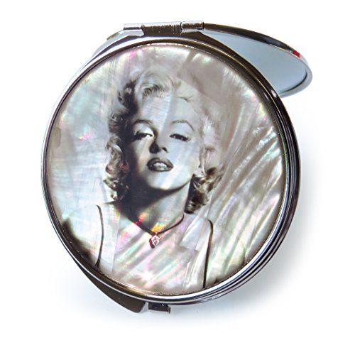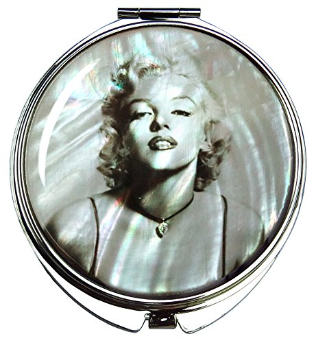 Marilyn Monroe Makeup Mirror Mother of Pearl Metal Dual Compact Folding Magnify (Gray)