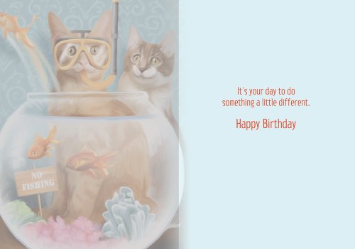 Tree Free Greetings No Fishing Funny Birthday Cards, 2 Card Set, Cats, Multicolored (14198)