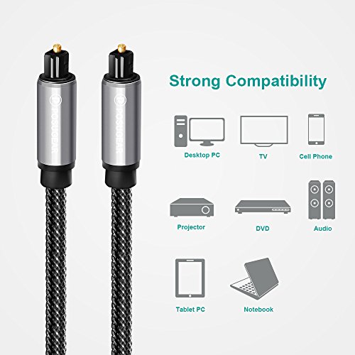 Compatibility : - CD/DVD?Player, Blu-Ray players,PS3, PS4, Xbox 360,Xbox One, Sky BOX, Virgin HD, Tivo, BT HD, Smart TV, Plasma TV, LED TV,LCD TV, DAT recorders,PC,wii - Game Consoles,?Set-top Box, Sound cards To Home Theatre, digital-to-analog converter or Soundbar, home entertainment, TV, Media Centre, Hi Fi preamplifier or Soundbar?etc More Features: Connector type: 2x optical Toslink male plugs? Compatible with any device which has a Toslink interface Complete resistance against interferences due to optical fibre Supported Interfaces: S/PDIF, ADAT's, Dolby Digital, and DTS? Gold-plated metal plugs ensure an optimal signal quality / conductivity? Surround Sound with centre loudspeakers and subwoofer for optimal sound High quality processing, nylon braiding and coating?protects the delicate fiber core Transmits?audio formats: Dolby Digital, DTS, DTS-HD, DVD, LPCM, SACD, MPCM, 3D Sound, 5.1, 7.1 Package Contents: 1x 2m Posugear?Toslink Optical Digital Audio Cable 1x Aftermarket card 0 |