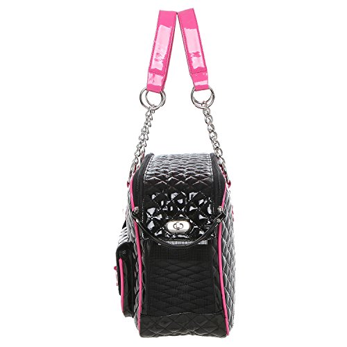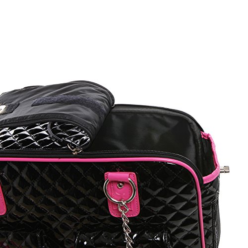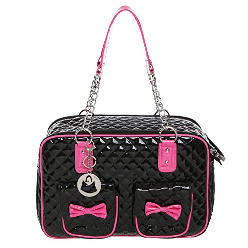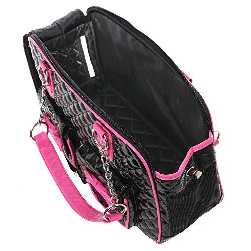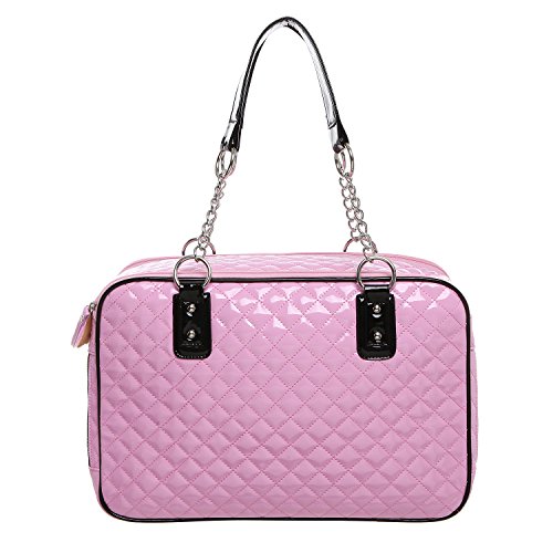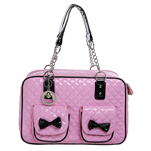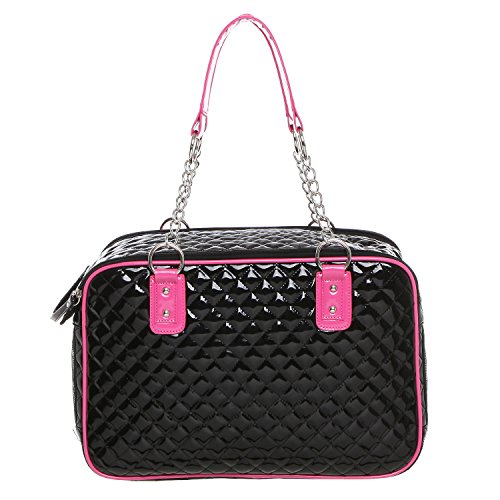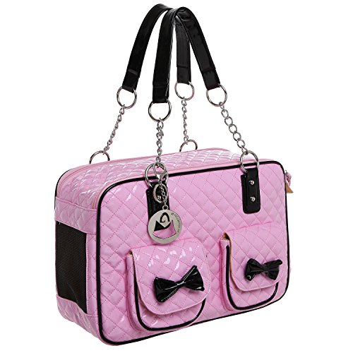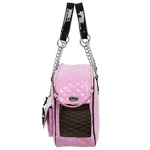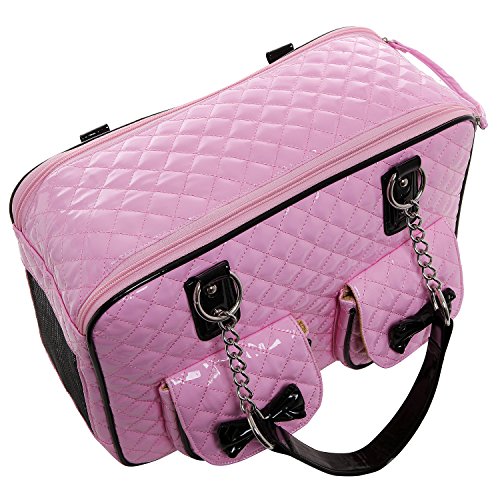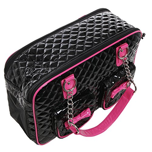 -. Binding : Misc. -. Brand : MyGift -. Feature : Soft-sided pet carrier with a stylish faux patent leather tote-style design, and mesh end panels to provide your pet with a view and fresh air. / Use the 2 front pockets decorated with adorable bows to carry treats, supplies, or other items when you're on the go. / The sturdy O-ring top handles make this carrier bag easy to keep your best friend close to you. / **Official MG Collection® product by MyGift® features signature keychain charm** / Approximate Dimensions: 15.75" W X 10.75" H X 7" W. -. Label : MyGift -. Manufacturer : MyGift -. MPN : TB-PET0035COL -. NumberOfItems : 1 -. PackageQuantity : 1 -. PartNumber : TB-PET0035COL -. ProductGroup : Pet Products -. ProductTypeName : PET_SUPPLIES -. Publisher : MyGift -. Size : M -. Studio : MyGift -. Title : MG Collection Fashion Faux Patent Leather Quilted Soft Sided Dog & Cat Travel Pet Carrier Tote Handbag