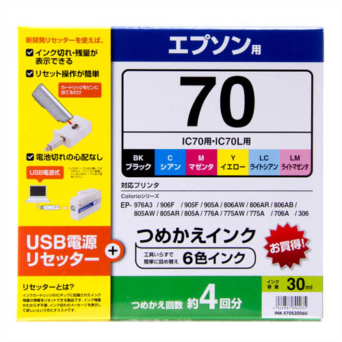 ●USBリセッターで電池切れの心配がない詰め替えインク!エプソン製IC70・70Lシリーズ対応USBリセッターで電池切れの心配がない詰め替えインク!エプソン製IC70・70Lシリーズ対応