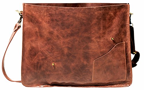 -. Feature : The Wild Satchel from KANZEK is a very large high-quality leather messenger bag with an adventurous vintage design and a unique distressed patina. Made of premium materials such as full grain calf leather and nylon thread, the bag is incredibly durable and conveys a premium and fashionable old-school look. Ultra light, with a padded detachable shoulder strap, it can be used as a messenger bag, crossbody bag, or shoulder bag for 18 inch laptops by men and women. / ✔ HIGH-QUALITY LEATHER, MATERIALS: Handcrafted using the best materials, the satchel is made of thick full grain calf leather in a dark brown-which is higher quality than genuine or top grain leather-slightly refurbished to grant it an outstanding and beautiful vintage look with amazing aging capabilities. Sourced from the best tanneries of Marrakesh, the leather is also waterproof and never stains. / ✔ STUPENDOUS CRAFTSMANSHIP, RESPONSIBLY MADE: Handmade in KANZEK's own workshop by a team of master craftsmen that hold more than twenty years of experience each, the outstanding attention that goes into the making of the bag is apparent in every single detail such as the flawless stitching with sturdy brown nylon thread. The bag is responsibly made as, at KANZEK, we value responsible business practices and pay our craftsmen twice as much the average industry wages. / ✔ A GREAT EXECUTIVE BAG FOR PROFESSIONALS: With its unique look, the bag fits both a work and casual environment and can be used by men and women. Carefully designed for functionality and carrying large items, the bag is big, designed for 18in laptops, and will perfectly hold your 17" to 18" inch computer, your accessories such as charger and tablet, and your documents. The closure system enables an easy access to your bag. / ✔ LIGHT, FUNCTIONAL, AND PRACTICAL: While being large and functional, the bag is light and weighs less than 4 lbs, that's over 60% lighter than most messenger bags. The bag has a padded adjustable and detachable shoulder strap, a smart snap closure on the front flapover, and 2 large inner pockets. The Bag is 17.7" in Width x 13.4" Height x 9.0" Depth.