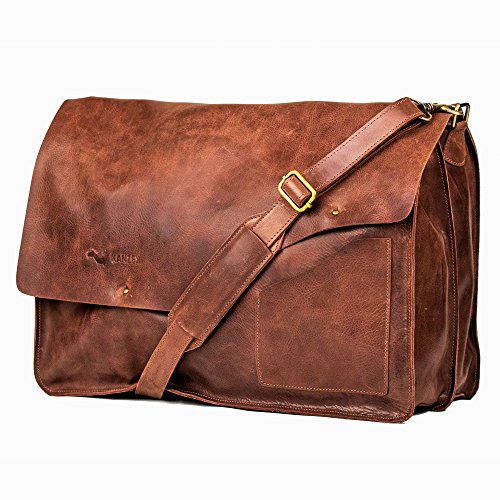 -. Title : KANZEK 17-18" Leather Laptop Bag/Messenger/Shoulder Satchel for Work, College, and Outdoors - Beautiful Distressed Vintage Brown/Cognac Patina - Large and Light for Men & Women