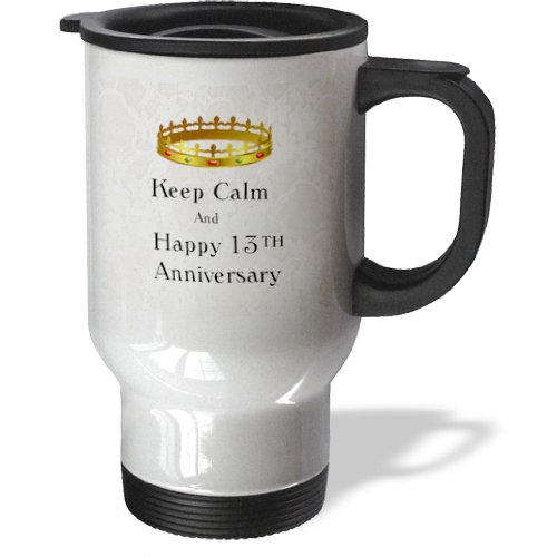 3dRose Keep Calm N Happy 13th Anniversary with Lace Photo Travel Mug, 14-Ounce