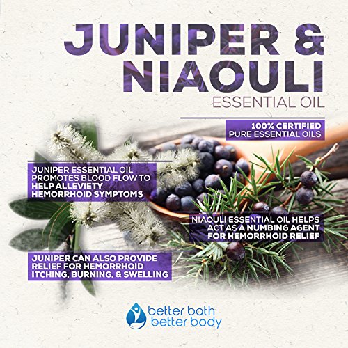 -. Feature : Relieve Hemorrhoid Symp Naturally With This Epsom Salt Sitz Bath / Pure Juniper Essential Oil Helps Reduce Pain & Tension While Increasing Blood Flow / Pure Niaouli Essential Oil Helps Cleanse & Support Blood Vessel Function / USP Grade Epsom Salt Provides Natural Hemorrhoid Relief From Pain & Swelling / Vitamin C Crystals Naturally Help Eliminate Chlorine & Ammonia In Your Bathwater