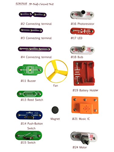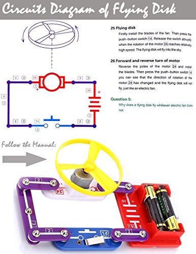 -. Feature : ✔ STEM (Science, Technology, Engineering, Math) LEARNING TOY - Liyic DIY Circuits learning toy can be built 58 projects investigating alternative strategies.This toy allows kids to construct their very own circuit experiments. Through the construction process, kids can also learn about problem solving and attention to detail when reading the manual. / ✔ LEARN THROUGH PLAYING - Kids can learn how to use alternative circuits to build projects and see the real circuits experiments built from their fingertips. Our educational toy features scientific and physical fun facts in the instruction manual. / ✔ PROMOTES CHILDREN'S CURIOSITY: Liyic Electronic kit is a great start for introducing kids to basic electronics ,cool experiments and electrical circuits. It makes kids imagination go free with creativity. / ✔ Experiments included:Lamp,Fan,Music Door Bell and more.Light,magnet,hand and sound control are involved. / ✔ Contains:Photoresistor,Music IC,LED,Bulb,Buzzer,Switch,Motor and more.