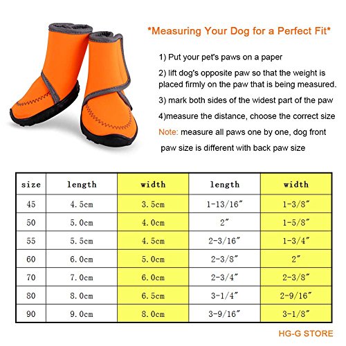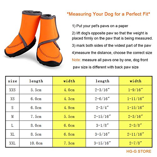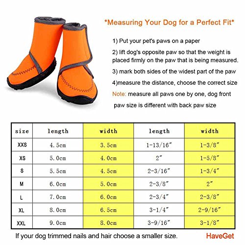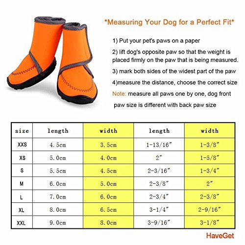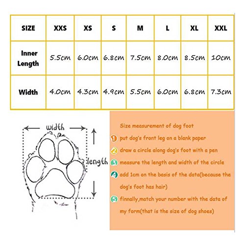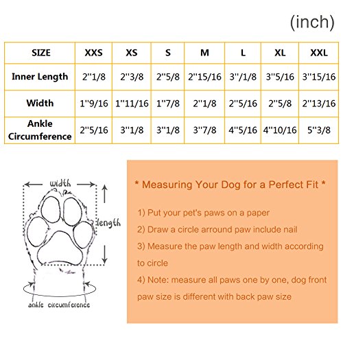 1) Put your pet's paws on a paper 2) Draw a circle arround paw include nail 3) Measure the paw length and width according to circle 4) Note: measure all paws one by one, dog front paw size is different with back paw size