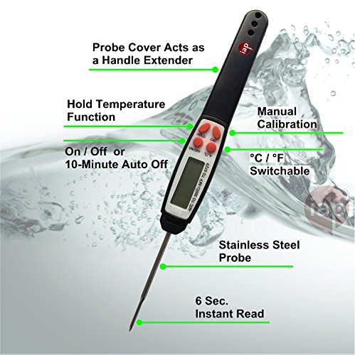 SPLASH PROOF & WORKS ANYWHERE: Battery is included just remove the cap push on and its ready. Perfect for inside or outside of your kitchen, like when grilling, turkey fryer, making candy, using hot oil to deep fry, brewing beer and wine and even making cheese and bread.