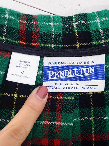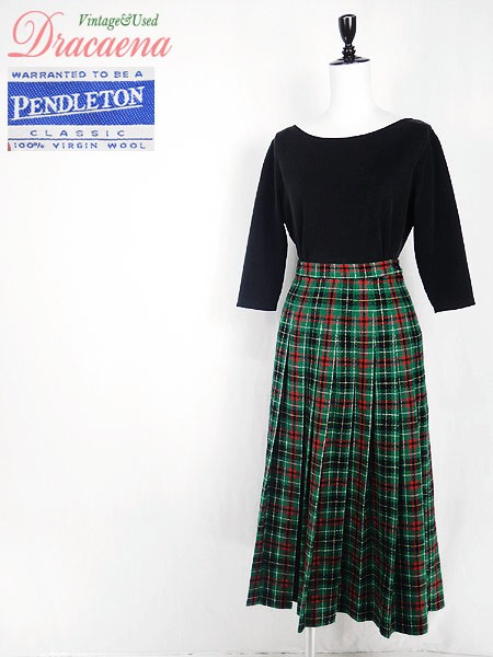 Ladies ブランドPendleton ペンドルトン カラー緑・黒・赤 メール便不可 コンディション★★★ モデル- 素材ウール100% 表記サイズ8 スタッフコメント裏地なし。 実寸サイズ 着丈 80 cm ウエスト 26 インチ( 66 cm) ※ウエスト・ヒップ以外は平置き採寸