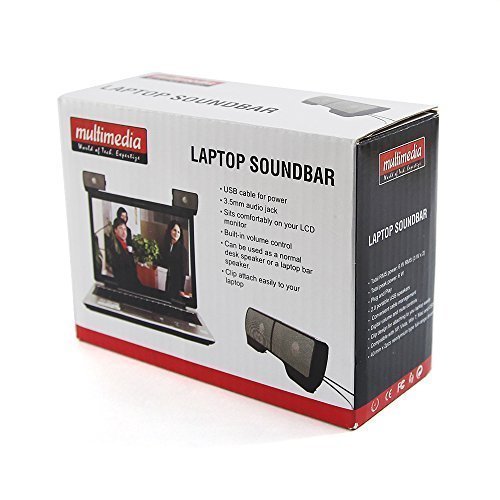 -. Feature : USB cable for power / 3.5mm audio jack / Sits comfortably on your LCD monitor / Built-in volume control; USB Cable for power; 3.5mm audio jack, clip attach easily to your laptop / Can be used as a normal desk speaker mobile phone and laptop bar speaker