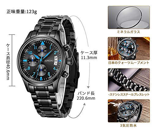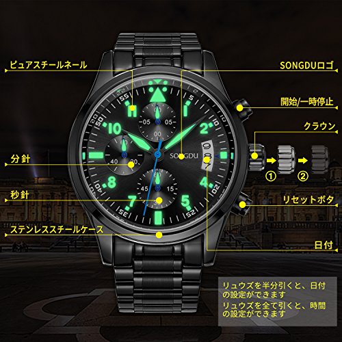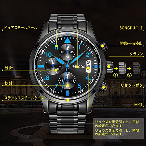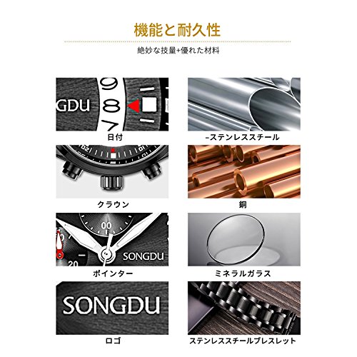 -. Title : SONGDU メンズ 腕時計 多針アナログ 日付表示 カジュアル クォーツウォッチ