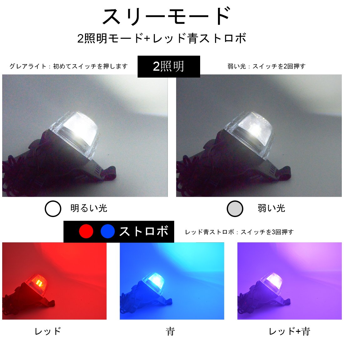 3 modes of lighting, bright lighting, low lighting, red and blue strobes, easily accommodate all kinds of environments.