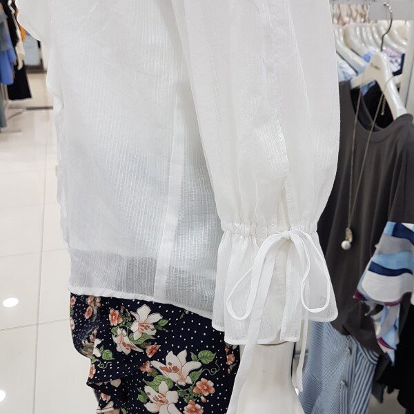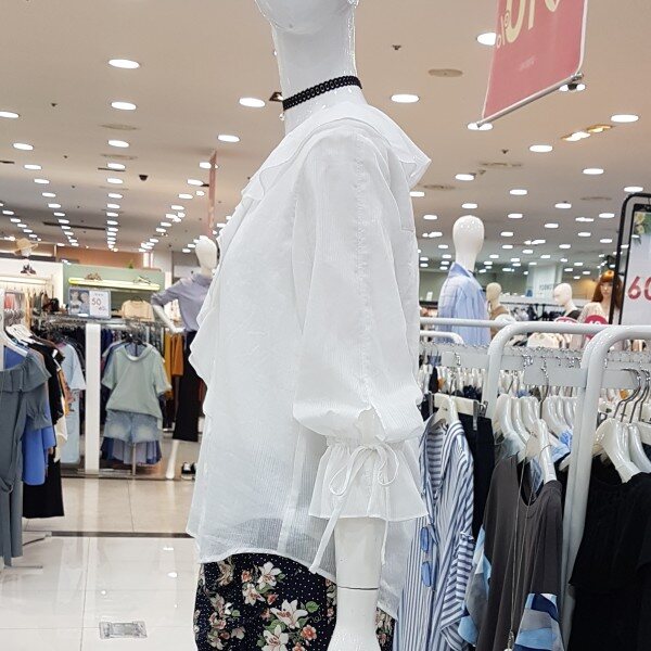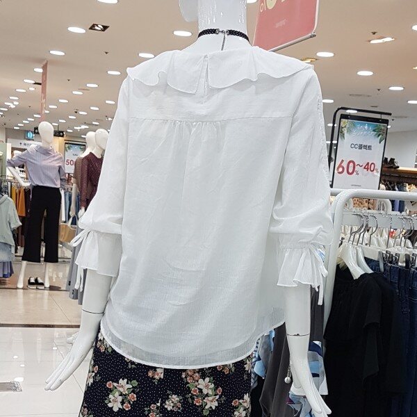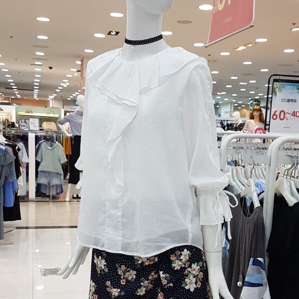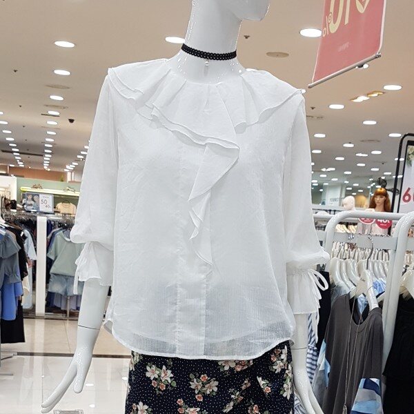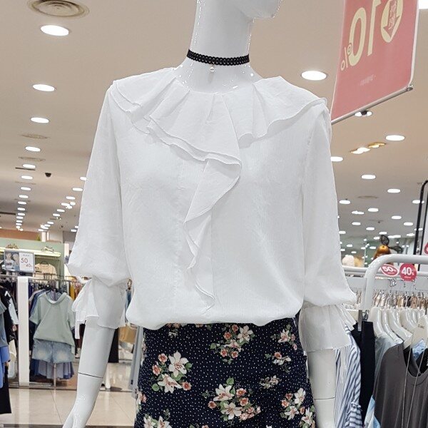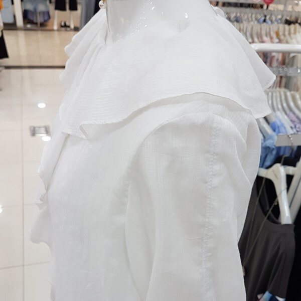깔끔 아이보리컬러에 블라우스네요앞판까지 이어지는 러플에 여리해보여용여성스럽고 귀여운 스탈이랍니다소매끈으로 기장조절가능하시구요비침걱정마시고 단품으로 활용좋아용^^