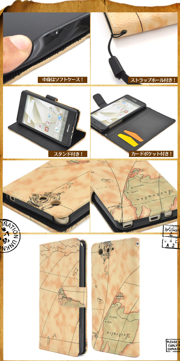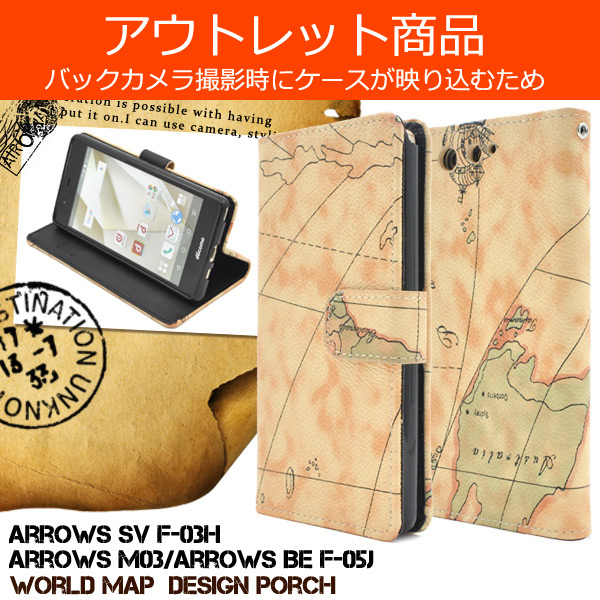 レトロな世界地図デザインがオシャレな、arrows SV (F-03H)/arrows M03用ケースポーチ!