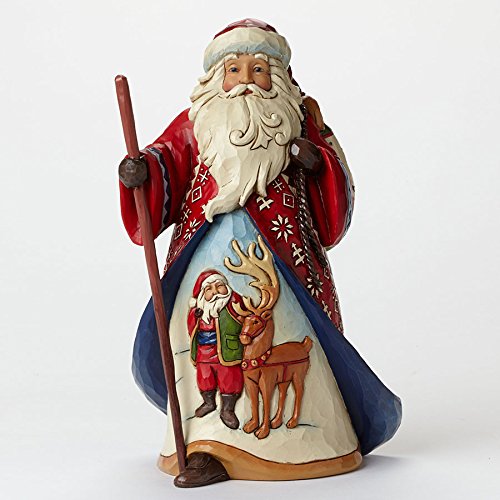 Jim shores 8th annual Lapland Santa is a colorful new addition to the series. This years piece features a beautifully carved scene with Reindeer and intricate decorative patterning inspired by Nordic artistic traditions that span generations.Feature
