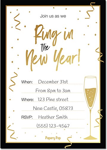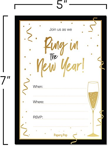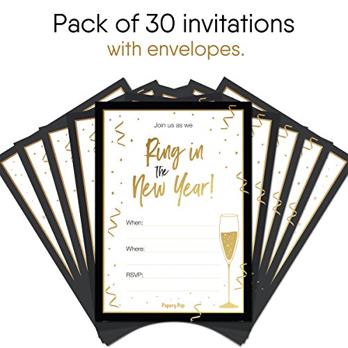 Studio : Papery Pop Publisher : Papery Pop Binding : Health and Beauty Product Description These high quality new year's eve invitations are printed on heavyweight matte card stock and come with mailing envelopes made out of superior paper. The invitations are post card style (non-folding) and come in a great design that your guests will absolutely love. There are 30 cards in total with 30 accompanying white envelopes all measuring 5×7 inches (A7 format). The new years eve party invitations are single-sided and can be written on with pencil or pen without smearing. Not only do they come in rich vibrant colors but they are thick, making them more durable! Copyrighted design registered by Papery Pop. 0