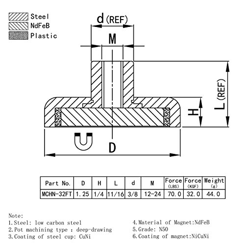 2 Pieces of CMS Magnetics Neodymium Cup Magnets w/ Female Threaded Stud - 70 LBS Hoding Power