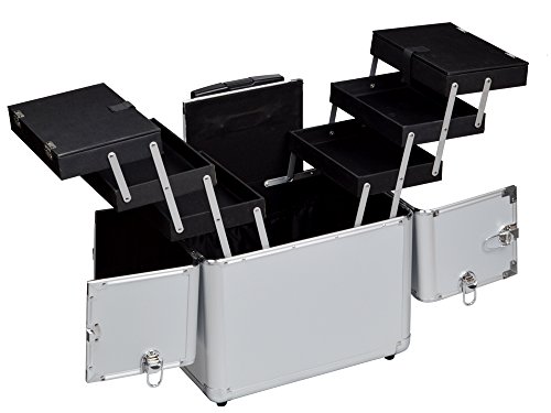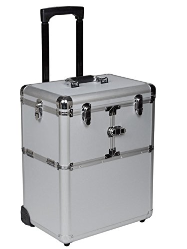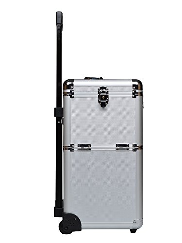 This case is the perfect asset for any professional make-up artist, hair stylist, nail technician, and much more. The high quality aluminum casing protects all your valuable assets, and the 2 heavy duty wheels allow you to transport your products virtually anywhere with ease. Features a removable top, and a deep compartment base with dual 3 tier extendable trays for ultimate customization and convenience.