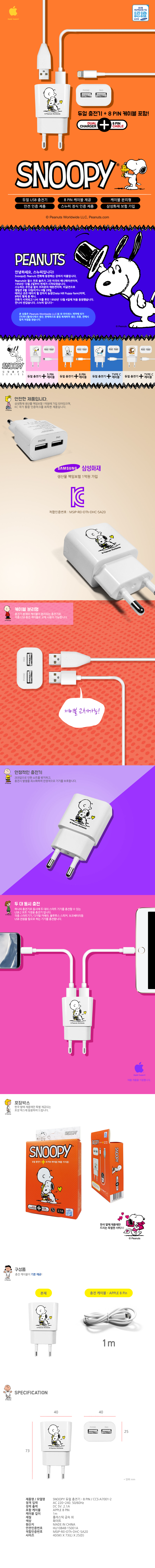 8 pin charger Snoopy Genuine iPhone Cable Conversion Gender Earphone USB