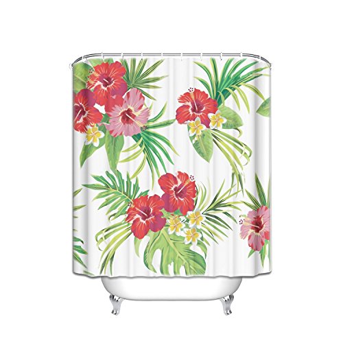 EZON-CH Customize Waterproof Hibiscus And Palm Leaves Floral Tropical Print Polyester Fabric Bathroom Shower Curtain 60x72IN