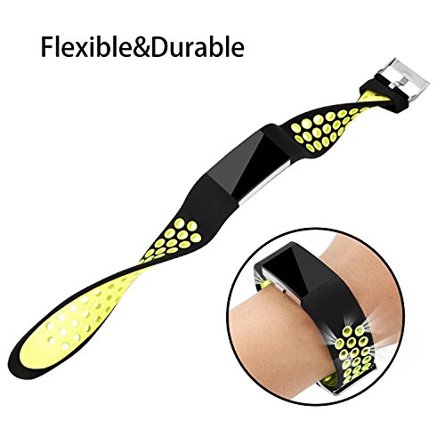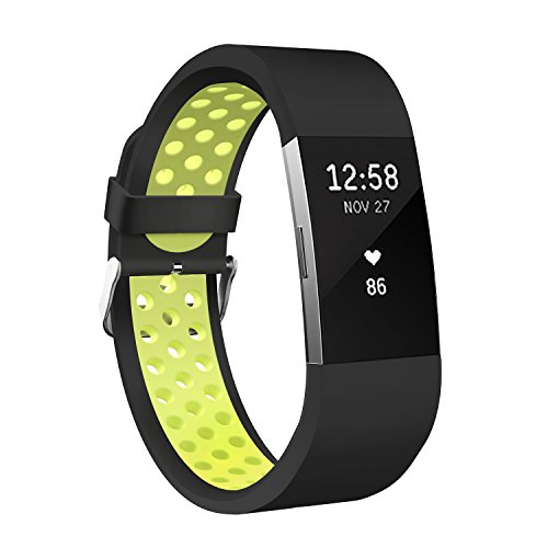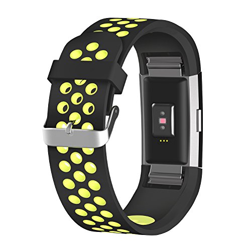 For Fitbit Charge 2 Bands, CNBEYOUNG Soft Silicone Adjustable Fashion Sport Strap for Fitbit Charge 2 HR Fitness Tracker (Black/Volt Yellow, Small Size-5.1-6.9inch)