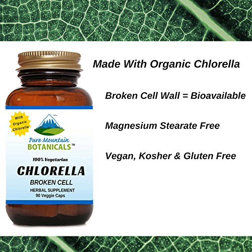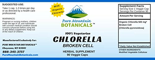 Broken Cell Chlorella Capsules. 90 Kosher Veggie Caps. Now with 500mg Organic Chlorella Vulgaris Powder