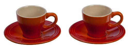 Le Creuset Stoneware Set of 2 Espresso Cups and Saucers, Flame