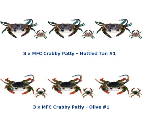 -. Feature : 6 Select Crab Flies in size 01 / 3X Crabby Patty Mottled Tan and 3X Crabby Patty Olive / Crab Assortment / Innovative and professionally tied flies by Montana Fly Company