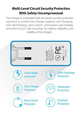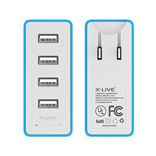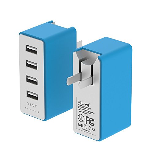 Wall Charger,X-LIVE 4 Ports USB Travel Charger Power adapter Charging Station 3.4A for iPhone iPad, iPhone 6/6s/plus/5/5s Samsung Galaxy, HTC HUAWEI XIAOMI Nexus Moto Fast and Quickly Blue