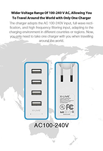 High speed all in one quick travel USB Charger: : 4 x 2.1A , total max output of 5V/3.4A.Charge your power hungry devices at full speed with 17 Watt and 3.4 total output. Perfect for international travel,AC 100 to 240V input voltage.Charge 4 devices simultaneously.