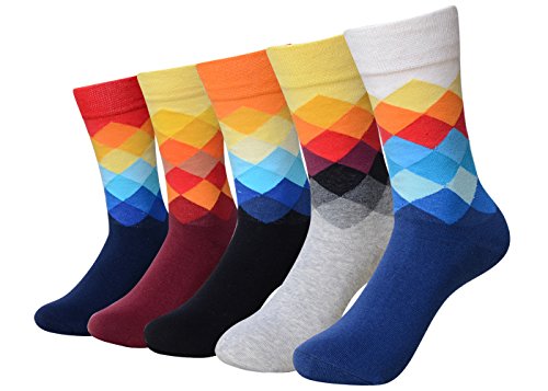 -. Title : QBSM Mens Unisex Fun Cool Dress Socks Colorful Funky Novelty Cotton Argyle Striped Crew Socks Pack