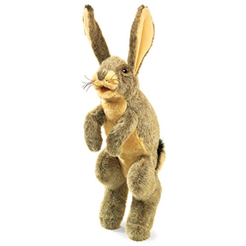 This long and lanky desert dweller, a fellow known for his dry wit and large feet, awaits animation by your hands. So, hop to it! JACK RABBIT puppet features movable head and arms, back opening.Feature