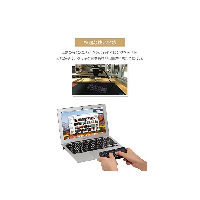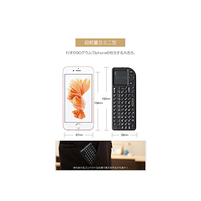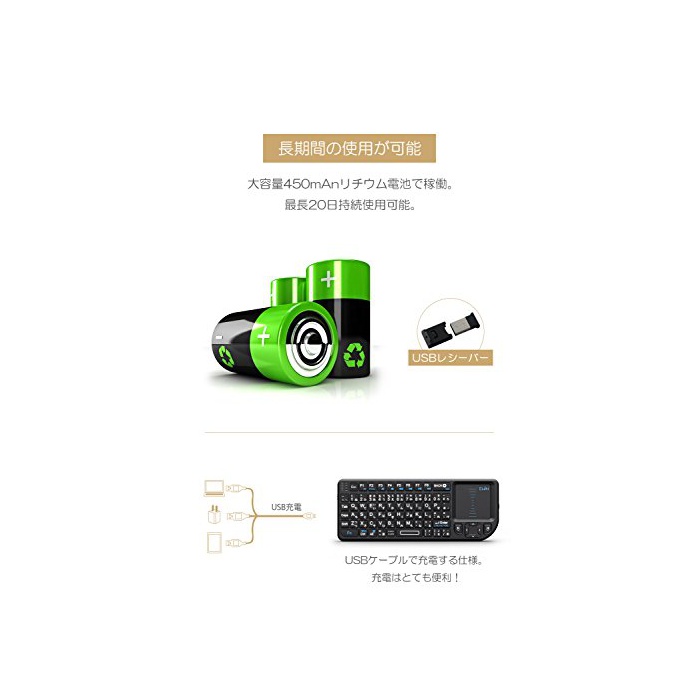 【터치 패드 탑재,키보드&마우스 일체형】터치 패드를 탑재하고, 좌우 클릭 키도 준비,키보드와 마우스 기능은 이것 1대로 실현.용도례:PC의 문자 입력,마우스로서 조작,게임 패드,다기능 리모콘으로서 스마트TV의 콘트롤,presentation의 콘트롤