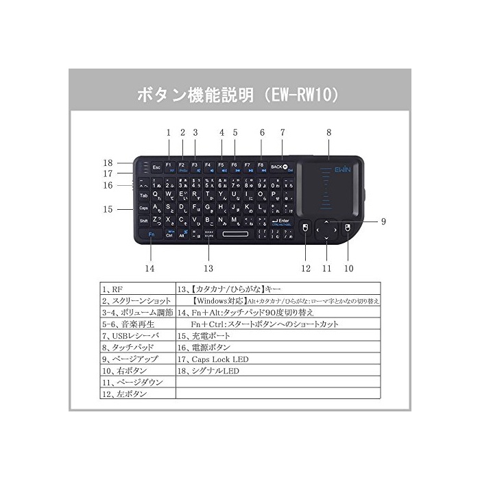 원본상품명: Ewin ミニ キボド ワイヤレス 2.4GHz タッチパッド搭載 超小型 mini Wireless keyboard マウス一型 キボド 日本語JIS配列 (72キ) 無線 USB