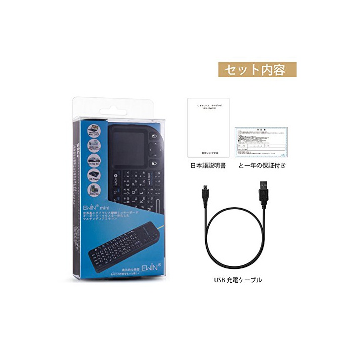Ewin 미니 키보드 wireless 2.4GHz 터치 패드 탑재초 소형 mini Wireless keyboard 마우스 일체형 키보드 일본어JIS배열 (72키) 무선 USB 리