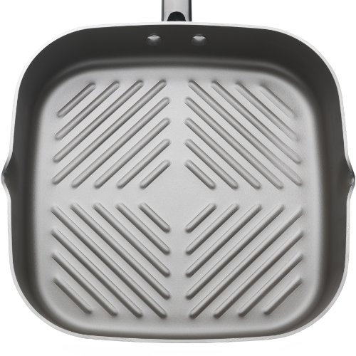 FARBERWARE SPECIALTIES ALUMINUM NONSTICK 11-INCH SQUARE GRILL WITH POUR SPOUT, PLATINUM