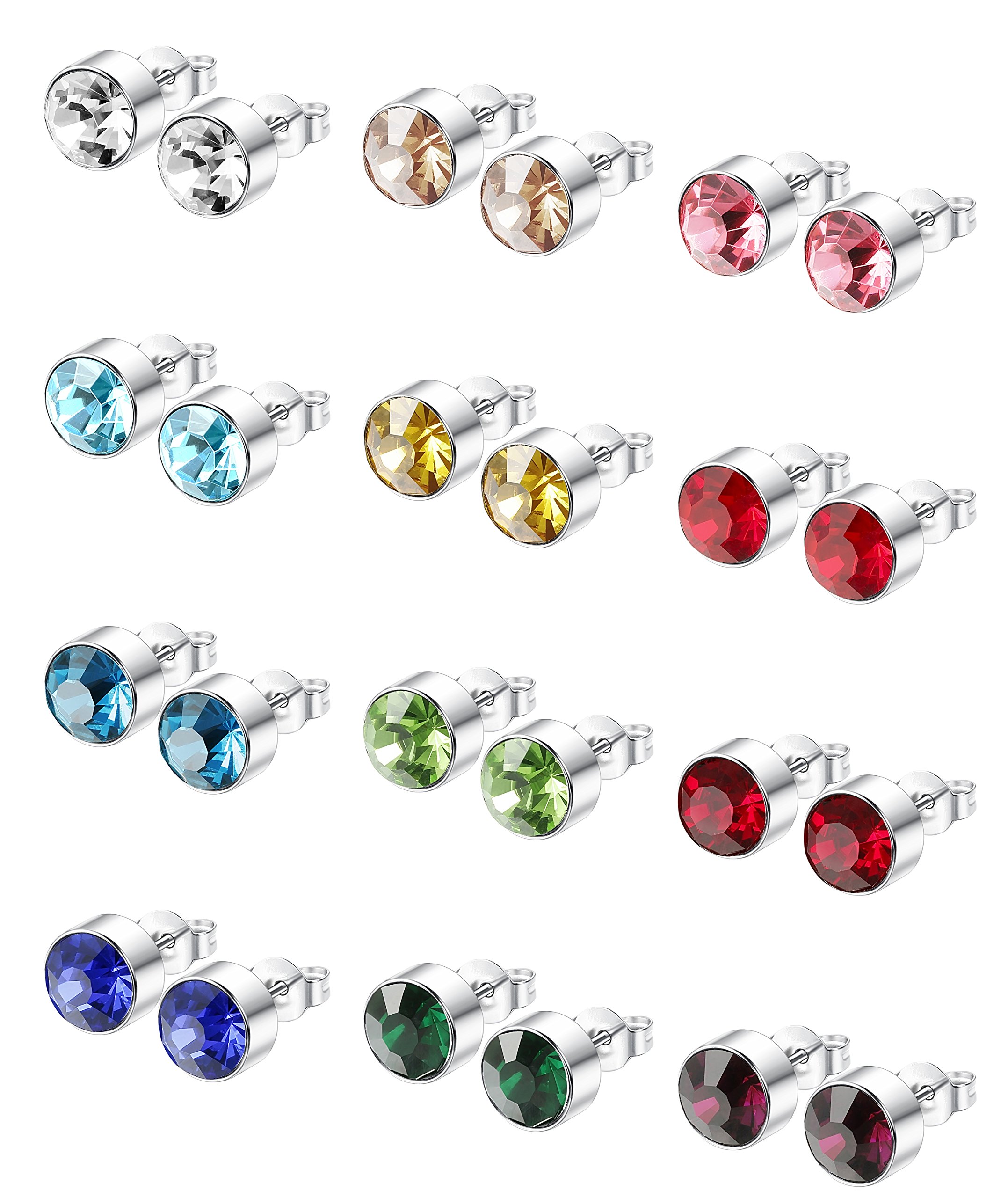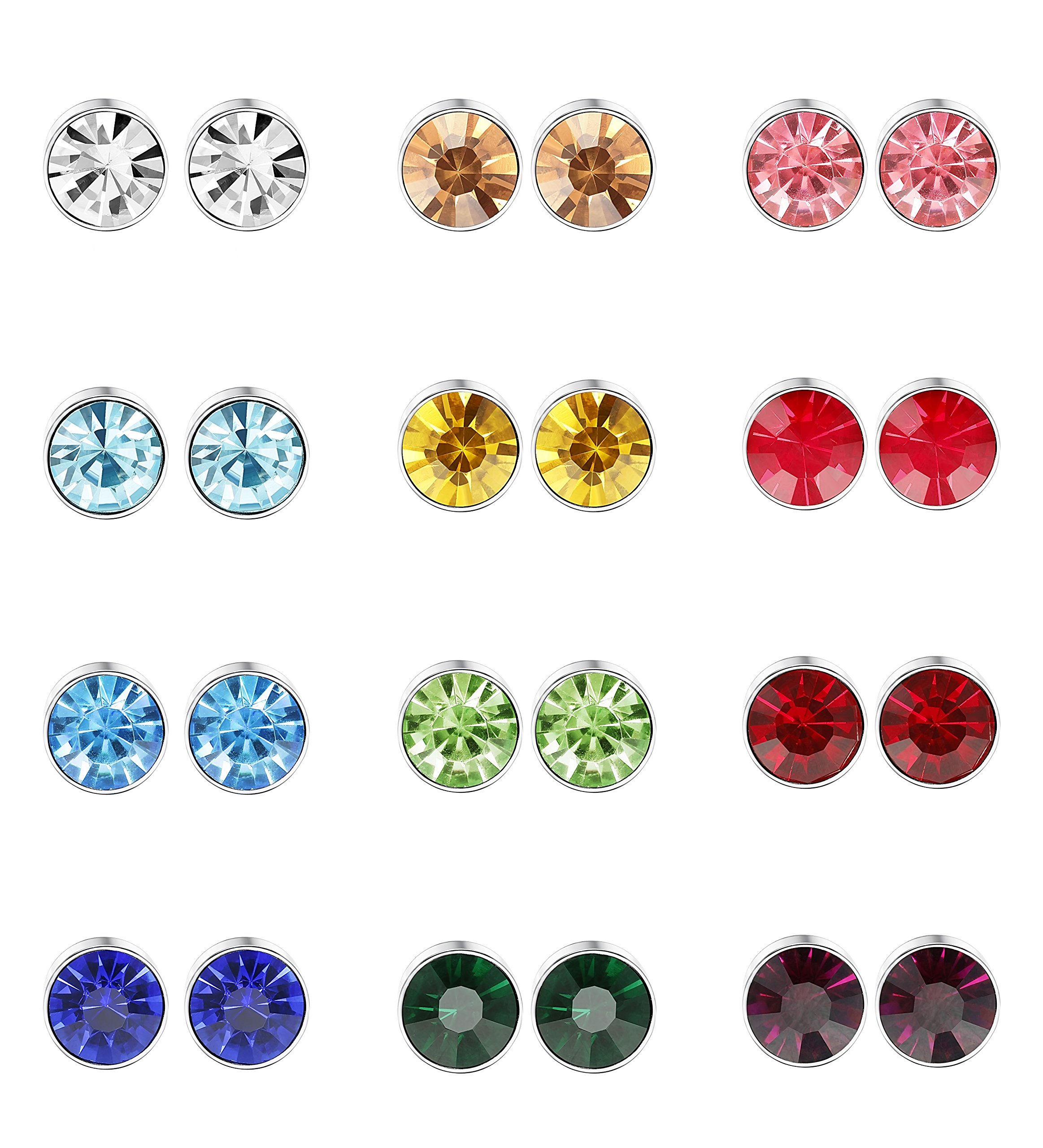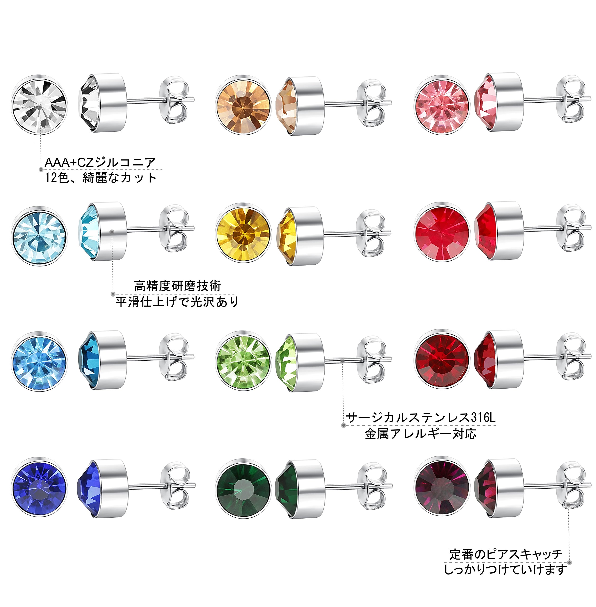 It adopts high quality CZ zirconia of AAA +, has nearly divergent refractive index, and is a bright 12 color earring set.