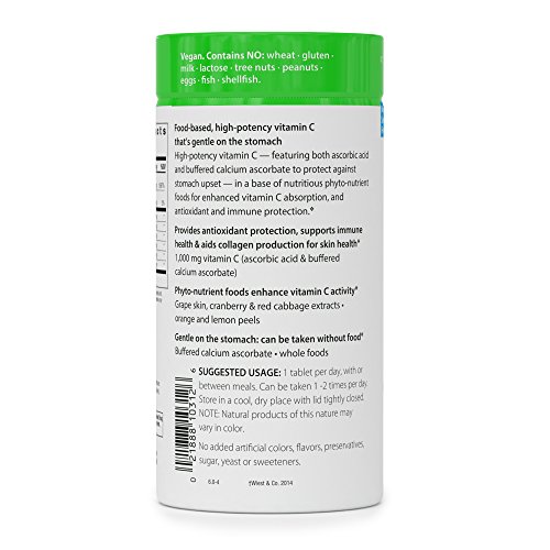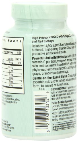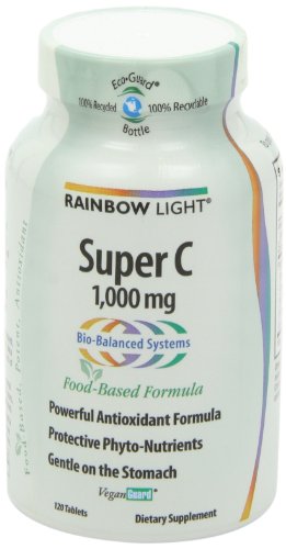 ReleaseDate : 2006-01-27 Studio : Rainbow Light Publisher : Rainbow Light Binding : Health and Beauty Product Description Vitamin C supplement. Food based. Powerful Antioxidant Formula. Protective Phyto-Nutrients. Gentle on the stomach. High-Potency Vitamin C System with Grape, Cranberry and Red Cabbage: Rainbow Light's Super C formula delivers partially buffered, high-potency Vitamin C in a base of protective phyto-nutrient foods for the most comprehensive Vitamin C product available. It Provides: Powerful Antioxidant Protection - With 1,000 mg of Vitamin C per tablet, to support normal immunity, and skin and connective tissue health, plus antioxidant phyto-nutrients that enhance C's activity, such as grape, cranberry and red cabbage with anthocyanidins, which also promote capillary health; Gentle-on-the-Stomach Vitamin C - featuring both ascorbic acid and the buffered calcium ascorbate form, to ensure no stomach upset. (These statements have not been evaluated by the Food and Drug Administration. This product is not intended to diagnose, treat, cure or prevent any disease). 100% Natural VegeGuard screened for vegans: no trace animal products. Free of artificial colors, flavors, sweeteners, preservatives and other objectionable additives often found in vitamin products. Hypoallergenic. Contains no sugar, lactose, soy, wheat, gluten, or allergenic yeasts. 0