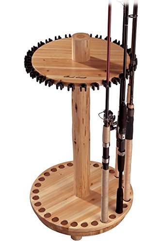 -. Binding : Sports -. Brand : Rush Creek Creations -. Department : Game Room and Leisure -. EAN : 0879482001269 -. Feature : Handcrafted solid pine round spinning fishing pole rack stores and displays up to 30 rods / Ultra Glide swivel system allows smooth 360-degree access to all rods / Soft rod clips adjust to any rod taper for maximum versatility / Checking is the natural drying process that creates splits in the wood for that true rustic look / Rack measures 17.5"L x 17.5"W x 33.5"H - easy to assemble -. IsAutographed : 0 -. IsMemorabilia : 0 -. Label : Rush Creek Creations -. Manufacturer : Rush Creek Creations -. Model : 37-0030 -. MPN : 37-0030 -. NumberOfItems : 1 -. PackageQuantity : 1 -. PartNumber : 37-0030 -. ProductGroup : Sports -. ProductTypeName : SPORTING_GOODS -. Publisher : Rush Creek Creations -. Size : 17.5"L x 17.5"W x 33.5"H -. Studio : Rush Creek Creations -. Title : Rush Creek Creations Rustic Round Spinning 30 Fishing Rod Storage Rack -. UPC : 858316006250