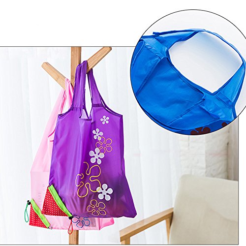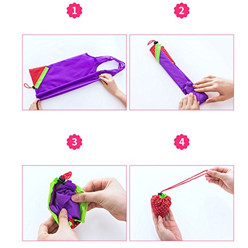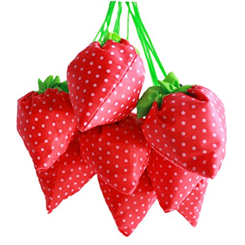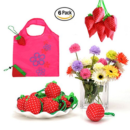 6 Pack, Folded into a Strawberry Foldable Reusable Recycling Shopping Tote Bag Travel Totes Grocery Recycle Bags, Various Color